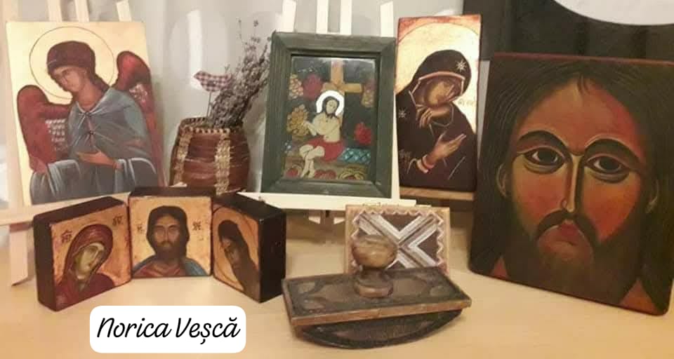 Sunt icoane bizantine, pictate după modele vechi, în tehnică tradițională, cu foiță de aur la aureolă sau fundal.